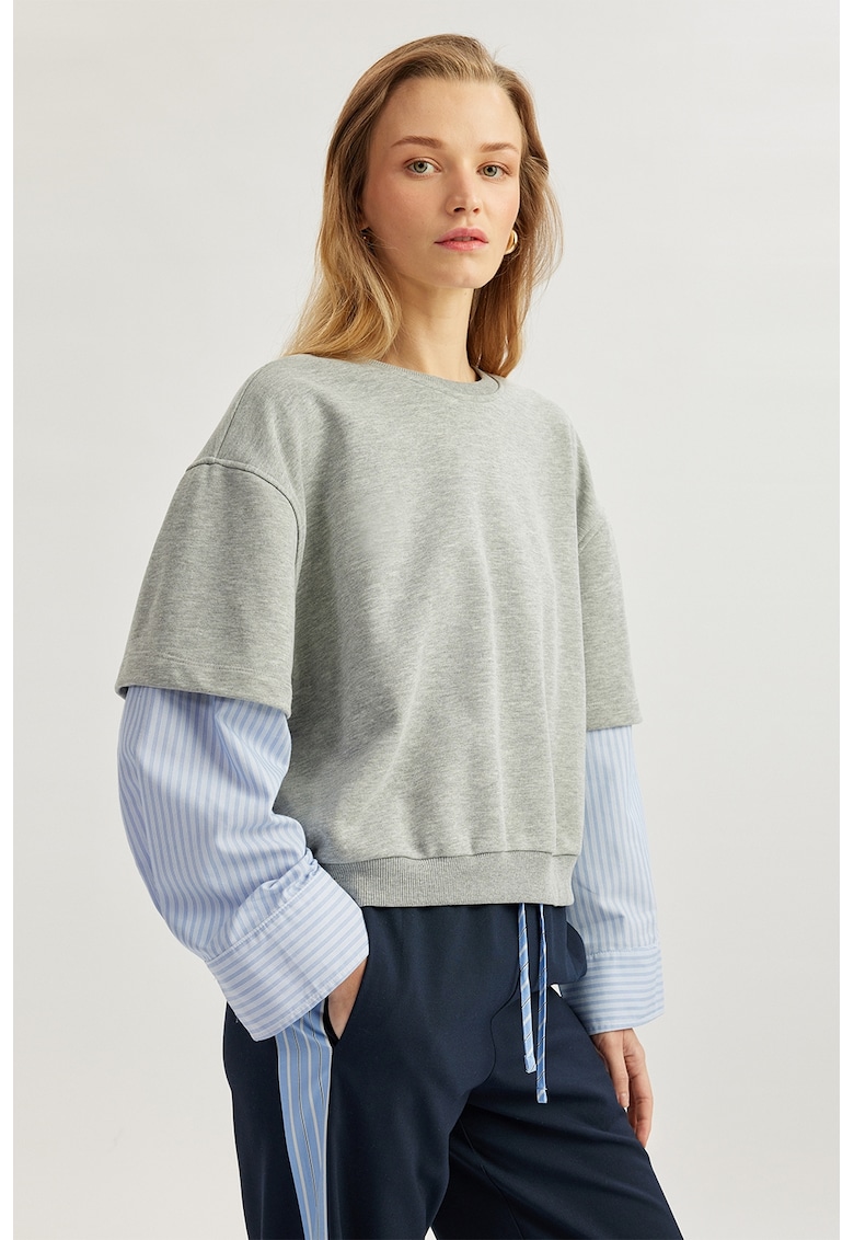 - gri melange Imprimeu: dungi Croiala: regular fit Sistem inchidere: fara inchidere Material: bumbac