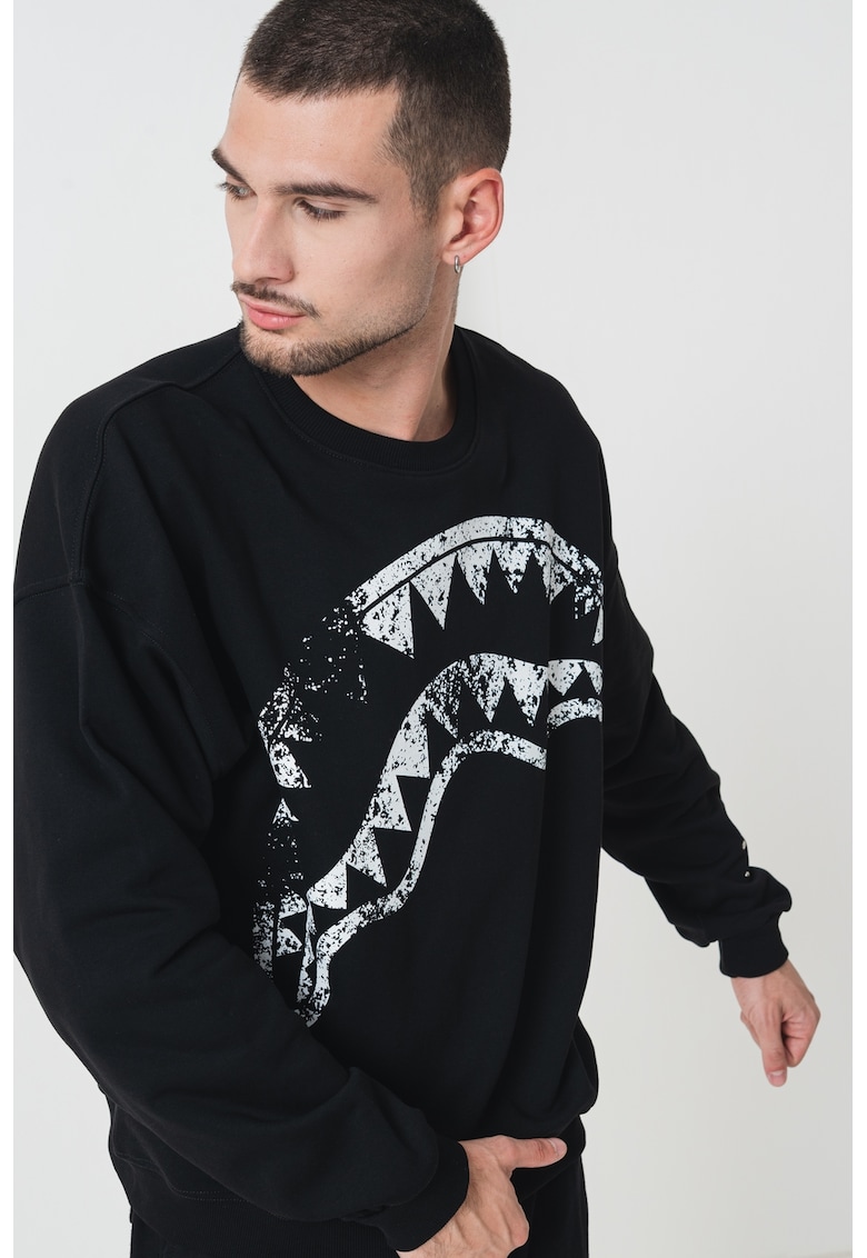 Caracteristici Tip produs: bluza de trening Culoare: negru Imprimeu: grafic Material: bumbac Croiala: regular fit Sistem inchidere: fara inchidere Lungime maneca: maneca lunga Compozitie Exterior: 100% bumbac Info model Modelul poarta un produs de marimea S. Marimi model: 190 cm inaltime