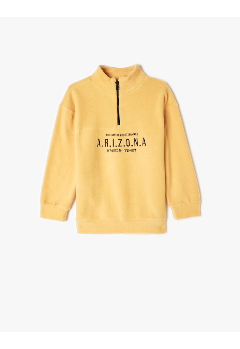 Caracteristici Tip produs: bluza de trening Culoare: galben mustar Imprimeu: text Croiala: regular fit Material: sintetic Lungime maneca: maneca lunga Detalii: fenta cu fermoar Sistem inchidere: fara inchidere Colectie: primavara