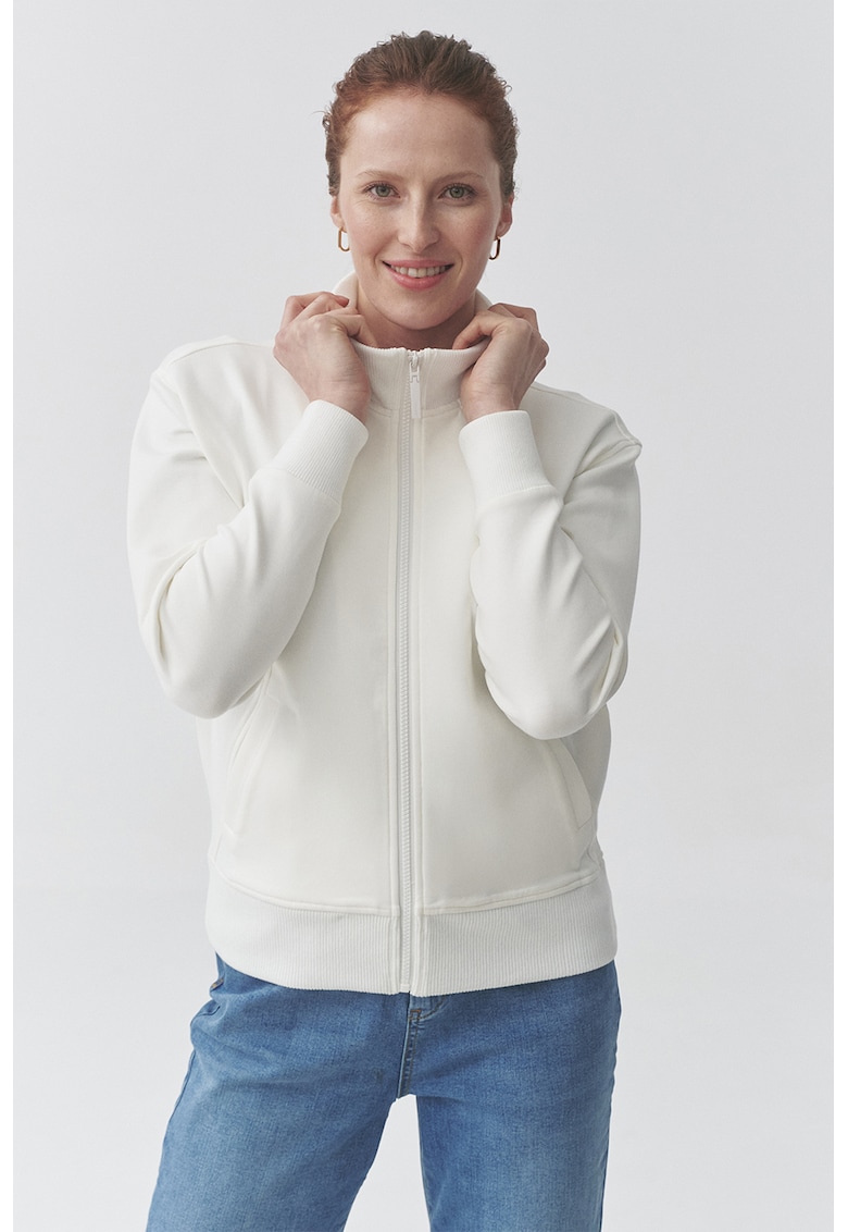 Caracteristici Tip produs: bluza de trening Culoare: alb optic Imprimeu: uni Croiala: regular fit Sistem inchidere: fermoar Material: sintetic