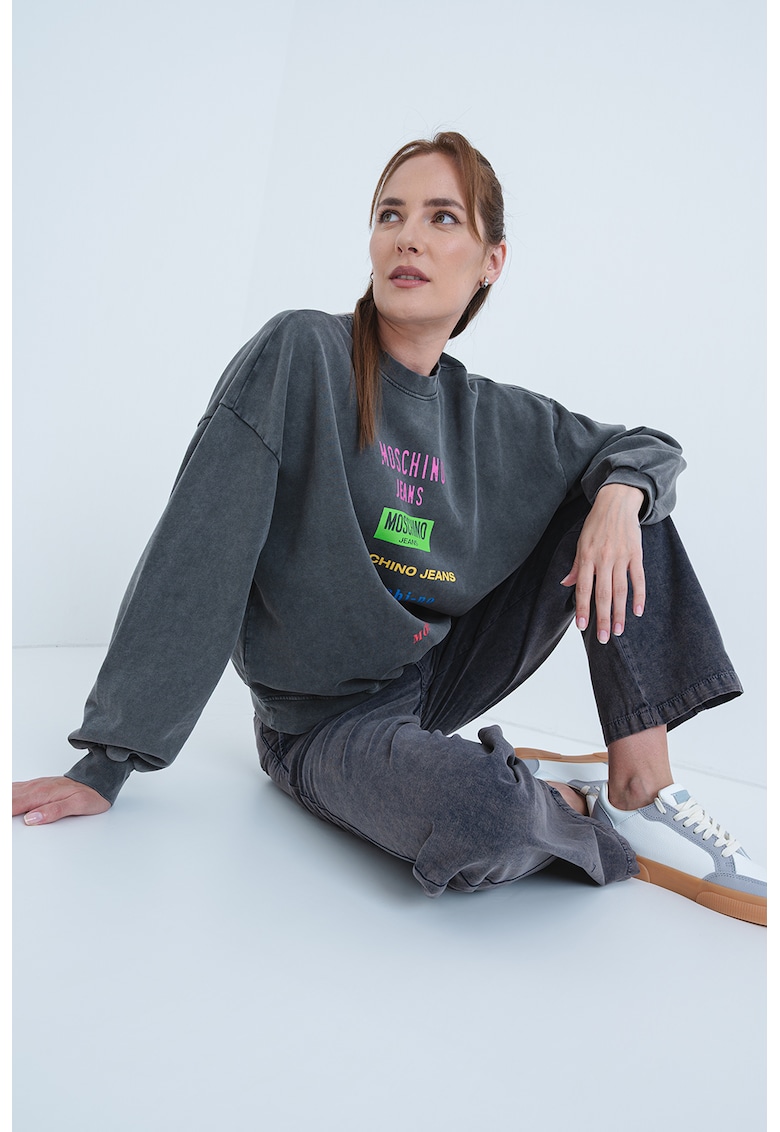 - gri inchis Imprimeu: logo Croiala: lejer Sistem inchidere: fara inchidere Material: bumbac Maneci: maneci cazute Lungime maneca: maneca lunga Compozitie Exterior: 100% bumbac Info model Modelul poarta un produs de marimea S. Marimi model: 180 cm inaltime