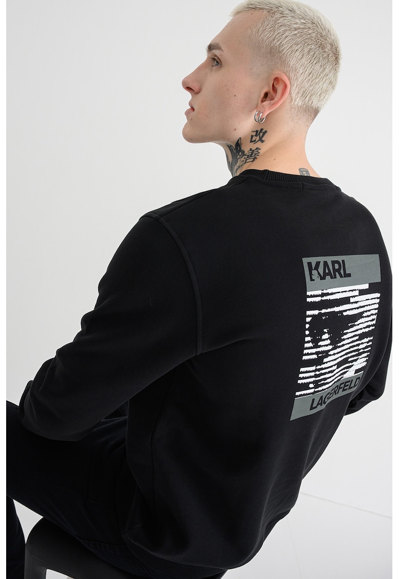 Caracteristici Tip produs: bluza de trening Culoare: negru Imprimeu: grafic Material: bumbac Croiala: regular fit Decolteu: rotund Sistem inchidere: fara inchidere Lungime maneca: maneca lunga Compozitie Exterior: 100% bumbac Info model Modelul poarta un produs de marimea M. Marimi model: 188 cm inaltime