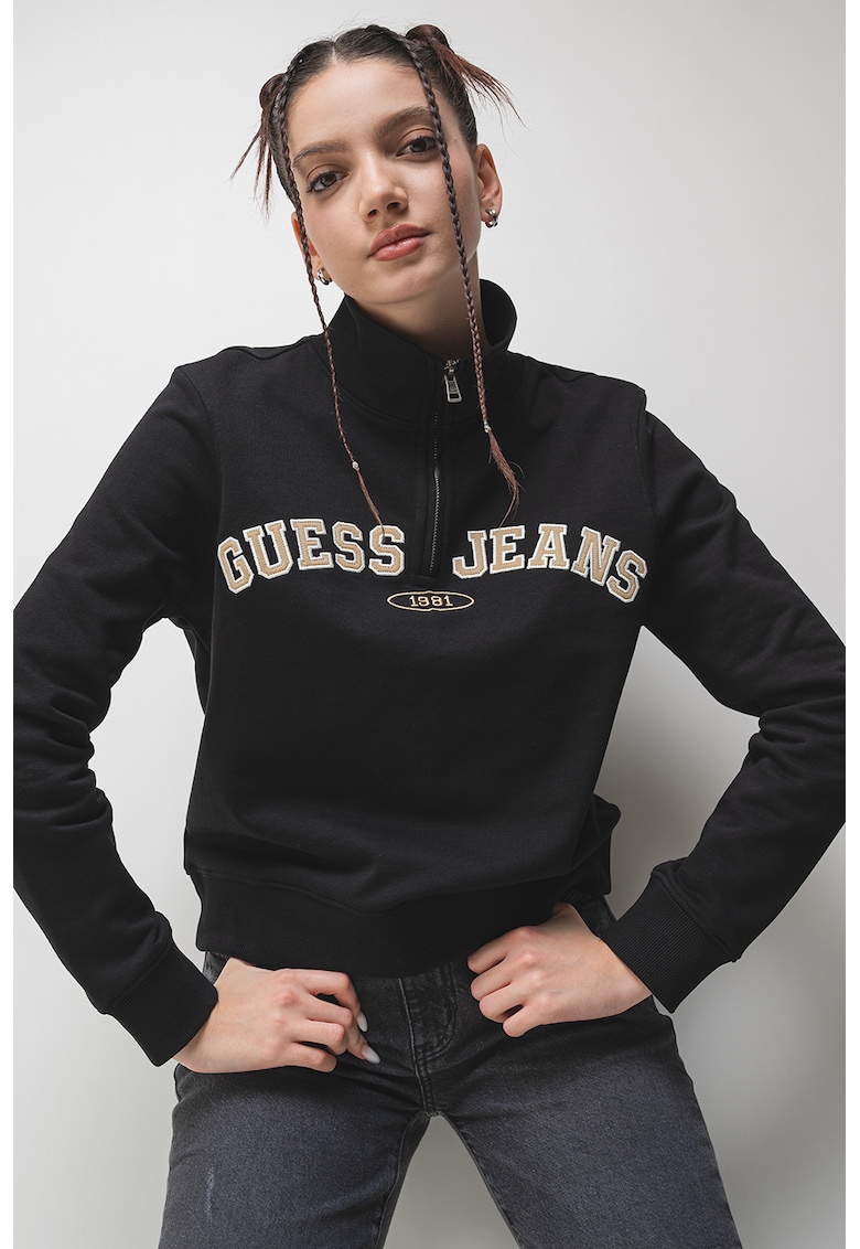 Caracteristici Tip produs: bluza de trening Culoare: negru Imprimeu: logo Croiala: regular fit Sistem inchidere: fara inchidere Material: bumbac Lungime maneca: maneca lunga Detalii: fenta cu fermoar Compozitie Exterior: 100% bumbac Info model Modelul poarta un produs de marimea S. Marimi model: 175 cm inaltime