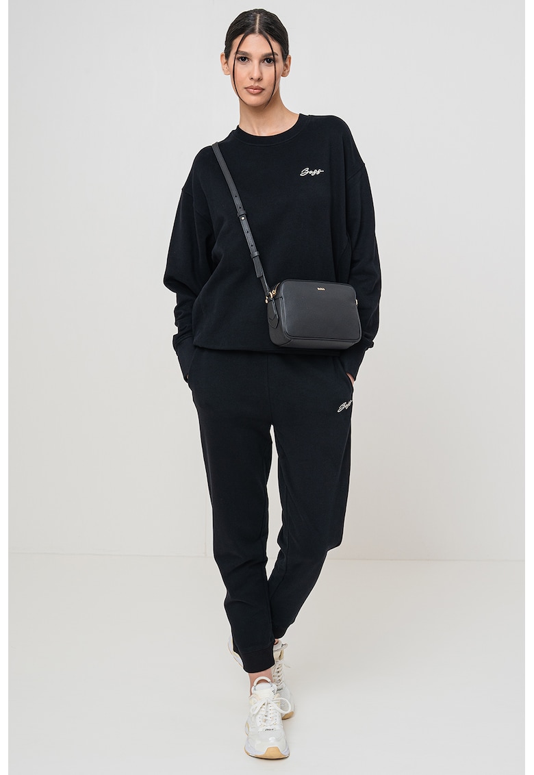 Caracteristici Tip produs: bluza de trening Culoare: negru Imprimeu: uni Croiala: regular fit Sistem inchidere: fara inchidere Material: bumbac Lungime maneca: maneca lunga Detalii: detaliu cu logo brodat Compozitie Exterior: 100% bumbac Info model Modelul poarta un produs de marimea S. Marimi model: 181 cm inaltime