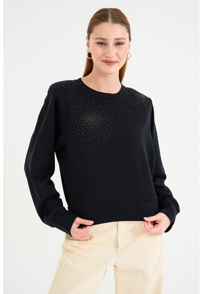 Caracteristici Tip produs: bluza de trening Culoare: albastru ultramarin Imprimeu: uni Croiala: regular fit Sistem inchidere: fara inchidere Material: bumbac Lungime maneca: maneca lunga Compozitie Exterior: 100% bumbac Info model Modelul poarta un produs de marimea S. Marimi model: 180 cm inaltime