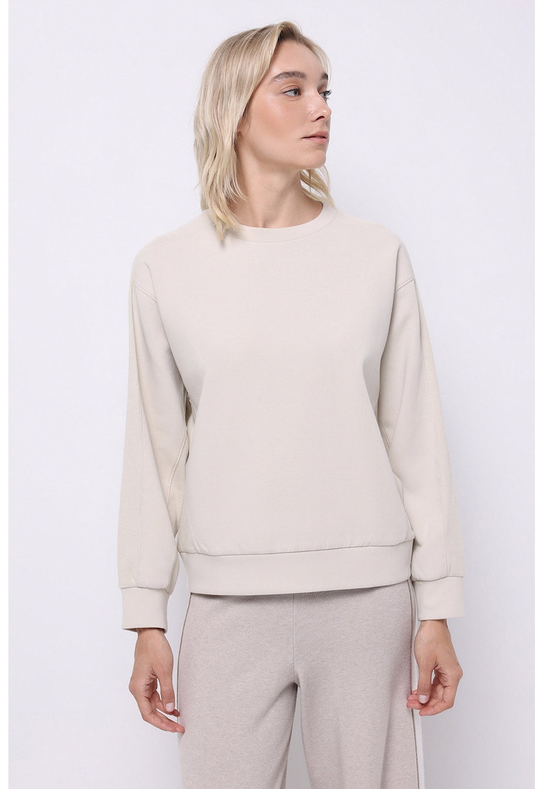 Caracteristici Tip produs: bluza de trening Culoare: bej deschis Imprimeu: uni Croiala: regular fit Sistem inchidere: fara inchidere Material: poliester