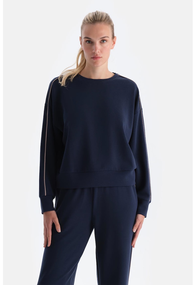 Caracteristici Tip produs: bluza de trening Culoare: bleumarin Imprimeu: uni Croiala: regular fit Sistem inchidere: fara inchidere Material: sintetic