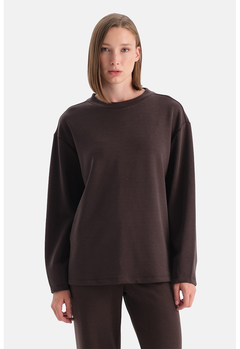 Caracteristici Tip produs: bluza de trening Culoare: maro inchis Imprimeu: uni Croiala: lejer Sistem inchidere: fara inchidere Material: poliester