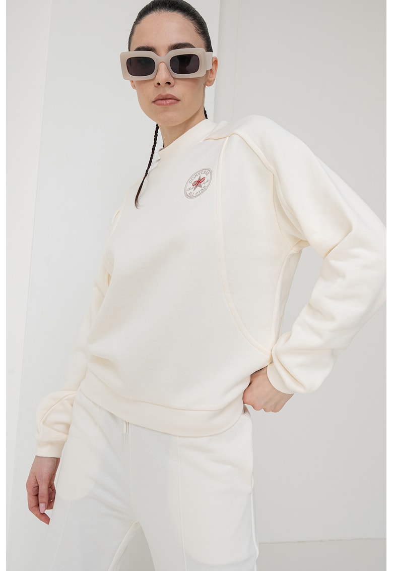 Caracteristici Tip produs: bluza de trening Culoare: crem Imprimeu: uni Croiala: regular fit Sistem inchidere: fara inchidere Material: bumbac Lungime maneca: maneca lunga Detalii: detaliu cu logo Compozitie Exterior: 100% bumbac Info model Modelul poarta un produs de marimea S. Marimi model: 177 cm inaltime
