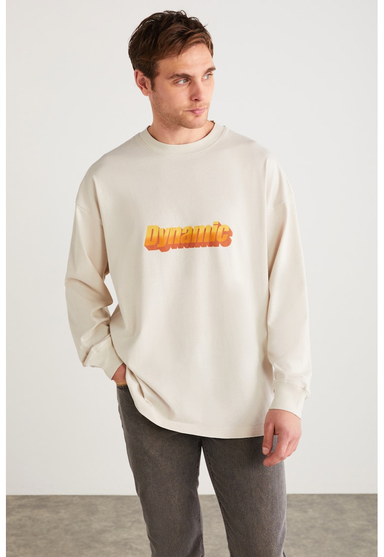 - bej deschis Imprimeu: text Material: bumbac Croiala: regular fit Decolteu: la baza gatului Sistem inchidere: fara inchidere Lungime maneca: maneca lunga Compozitie Exterior: 100% bumbac