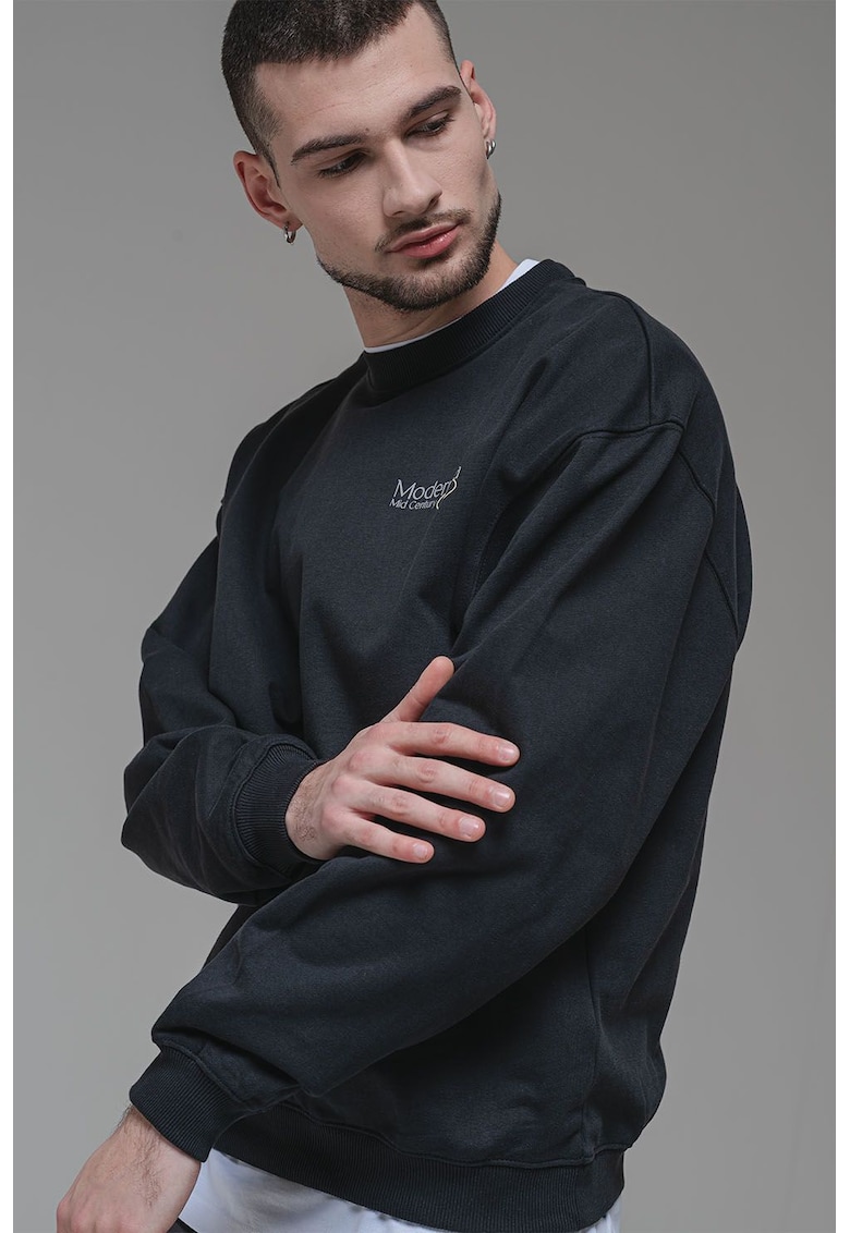 Caracteristici Tip produs: bluza de trening Culoare: negru Imprimeu: uni Material: bumbac Croiala: lejer Decolteu: la baza gatului Lungime maneca: maneca lunga Compozitie Exterior: 100% bumbac Info model Modelul poarta un produs de marimea M. Marimi model: 190 cm inaltime