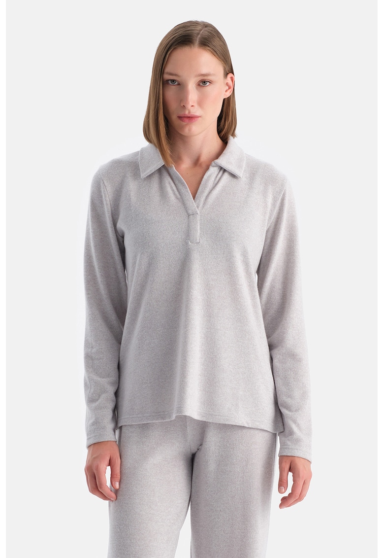 Caracteristici Tip produs: bluza de trening Culoare: gri deschis melange Imprimeu: uni Croiala: regular fit Sistem inchidere: fara inchidere Material: sintetic Maneci: cazute Lungime maneca: maneca lunga Compozitie Exterior: 67% poliester