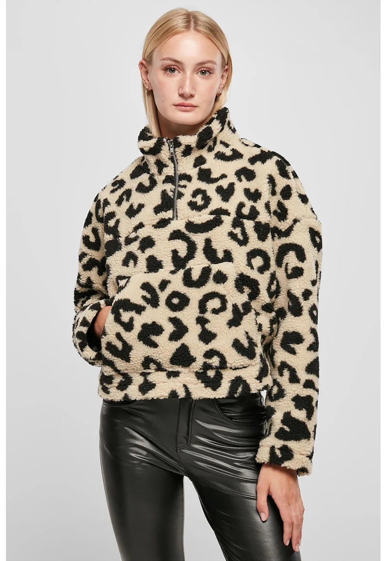 - bej deschis Imprimeu: animal print Croiala: regular fit Sistem inchidere: fara inchidere Material: poliester Maneci: cazute Lungime maneca: maneca lunga Buzunare: kangaroo Detalii: aspect pufos