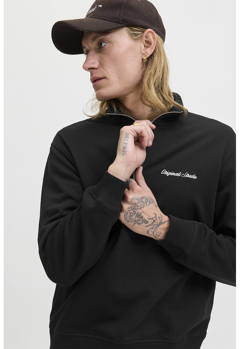 Caracteristici Tip produs: bluza de trening Culoare: negru Imprimeu: uni Material: bumbac Croiala: lejer Sistem inchidere: fara inchidere Lungime maneca: maneca lunga Detalii: fenta scurta cu fermoar Compozitie Exterior: 89% bumbac