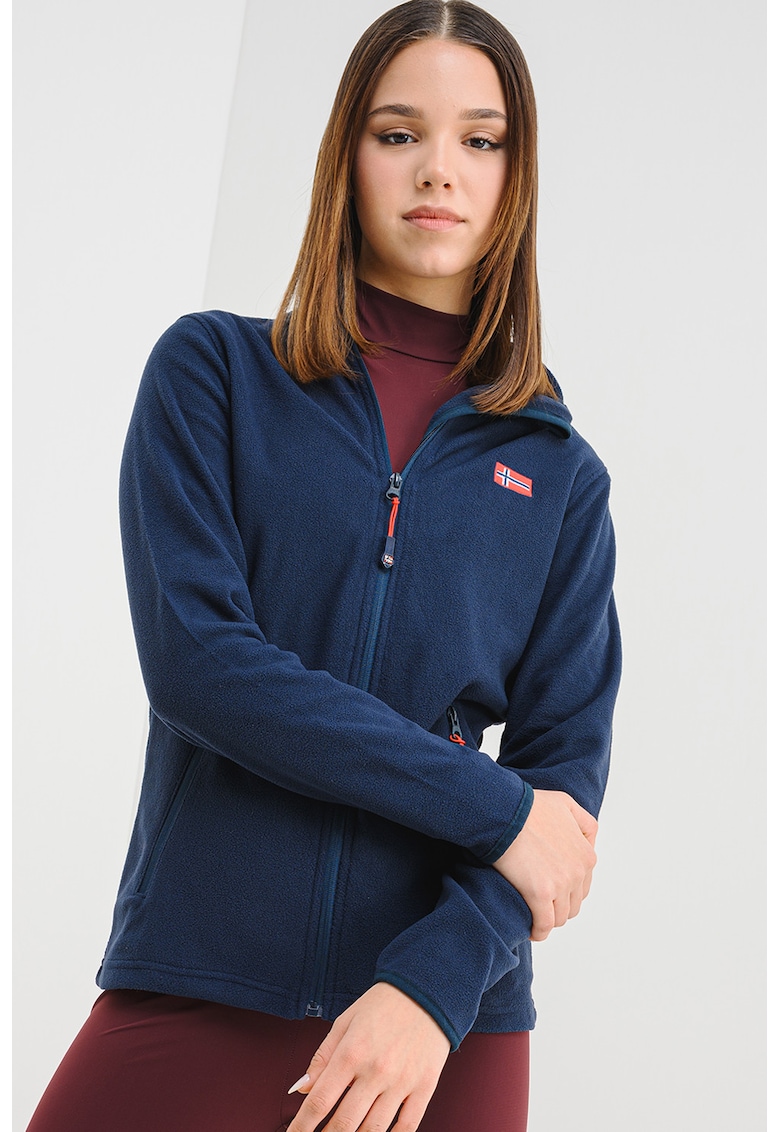 Caracteristici Tip produs: bluza de trening Culoare: indigo Imprimeu: logo Croiala: slim fit Sistem inchidere: fermoar Material: fleece Lungime maneca: maneca lunga Buzunare: cu fermoar Compozitie Exterior: 100% poliester Info model Modelul poarta un produs de marimea S. Marimi model: 174 cm inaltime