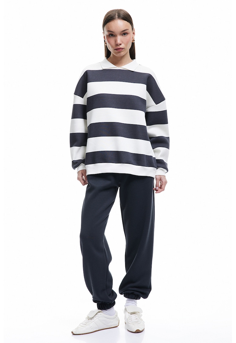 - gri antracit Imprimeu: dungi Croiala: lejer Sistem inchidere: fara inchidere Material: poliester