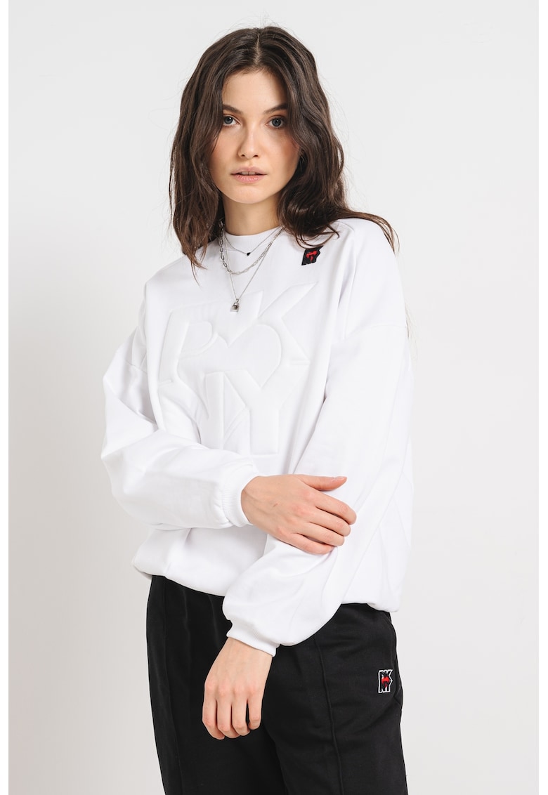 Caracteristici Tip produs: bluza de trening Culoare: alb optic Imprimeu: logo Croiala: lejer Sistem inchidere: fara inchidere Material: bumbac Lungime maneca: maneca lunga Compozitie Exterior: 100% bumbac Info model Modelul poarta un produs de marimea S. Marimi model: 176 cm inaltime