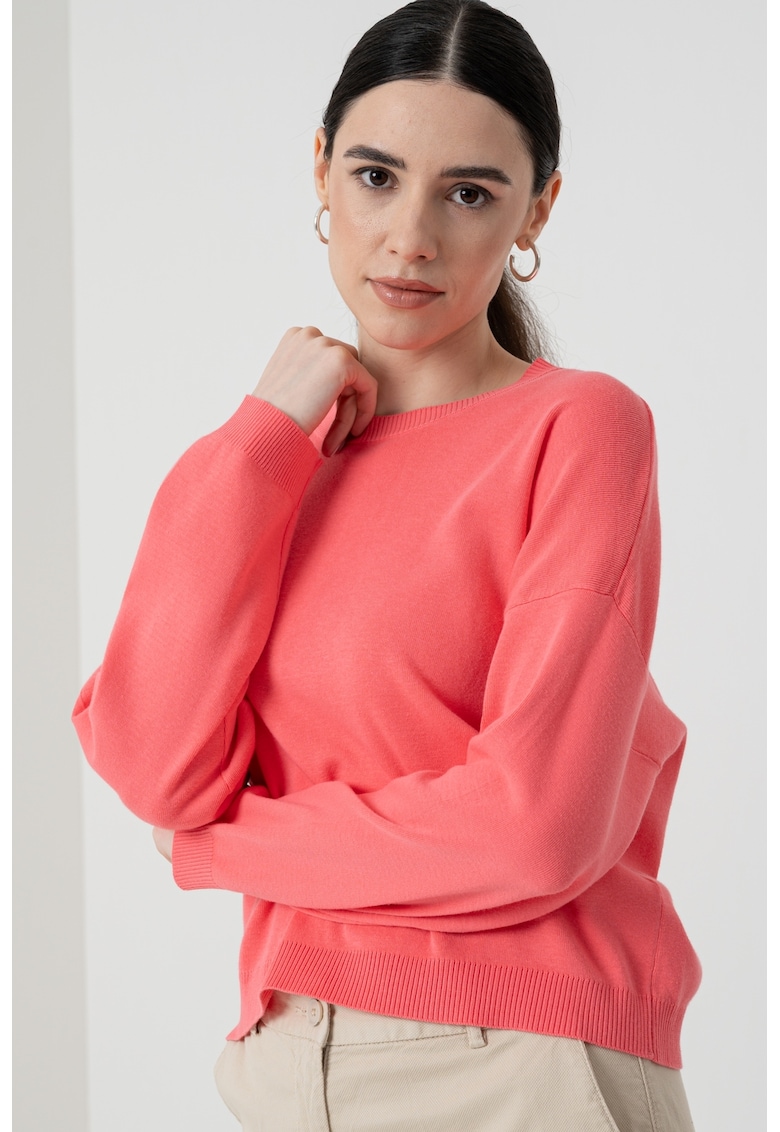 Caracteristici Tip produs: bluza de trening Culoare: coral Imprimeu: uni Croiala: lejer Sistem inchidere: fara inchidere Material: bumbac Lungime maneca: maneca lunga Compozitie Exterior: 100% bumbac Info model Modelul poarta un produs de marimea S. Marimi model: 177 cm inaltime