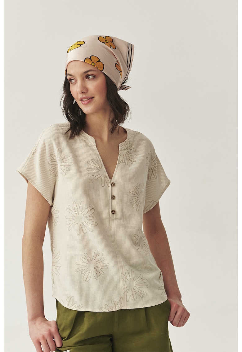 Caracteristici Culoare: bej deschis Imprimeu: floral Stil: casual Croiala: regular fit Sistem inchidere: fara inchidere Material: viscoza
