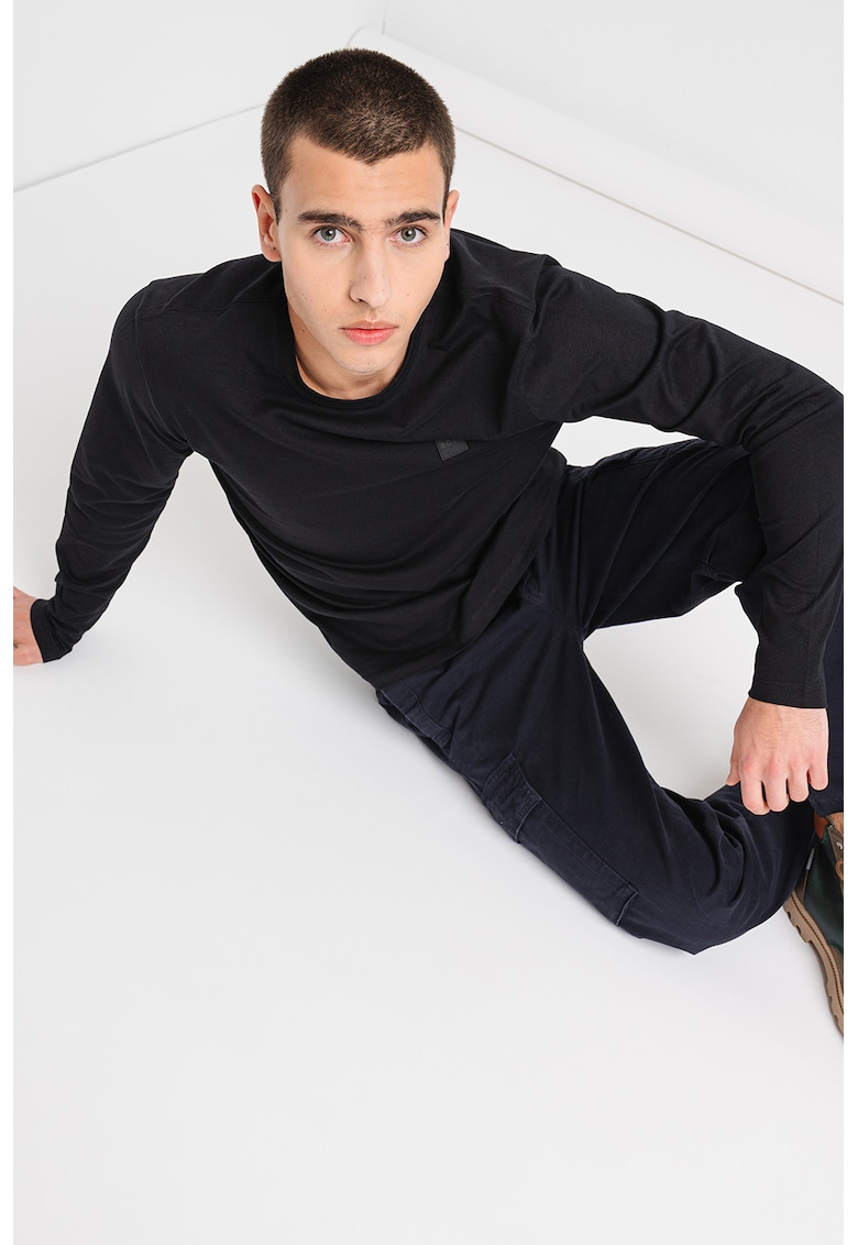 Caracteristici Culoare: negru Imprimeu: logo Material: bumbac Stil: casual Croiala: regular fit Sistem inchidere: fara inchidere Decolteu: rotund Lungime maneca: maneca lunga Compozitie Exterior: 100% bumbac Info model Modelul poarta un produs de marimea M. Marimi model: 184 cm inaltime
