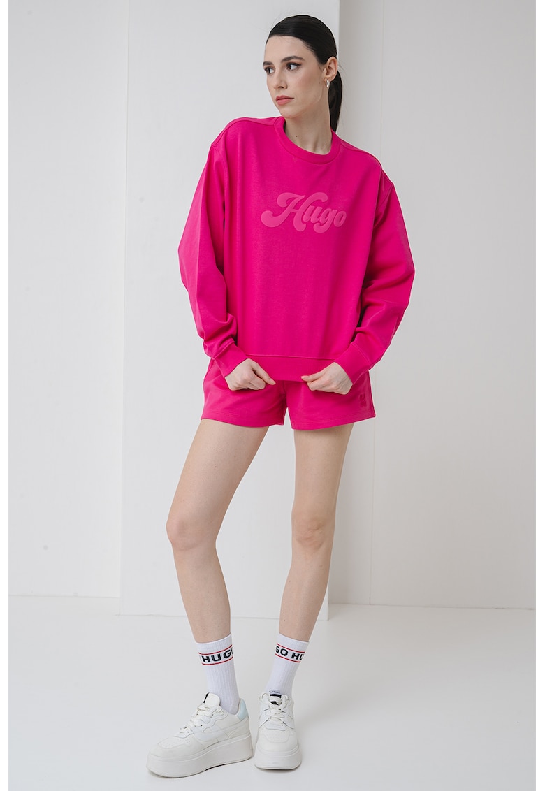 Caracteristici Tip produs: bluza de trening Culoare: fucsia Imprimeu: logo Croiala: lejer Sistem inchidere: fara inchidere Material: poliester