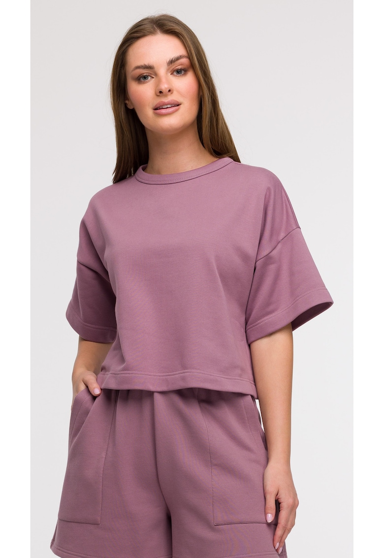 Caracteristici Tip produs: bluza de trening Culoare: mov Imprimeu: uni Croiala: crop Sistem inchidere: fara inchidere Material: poliester