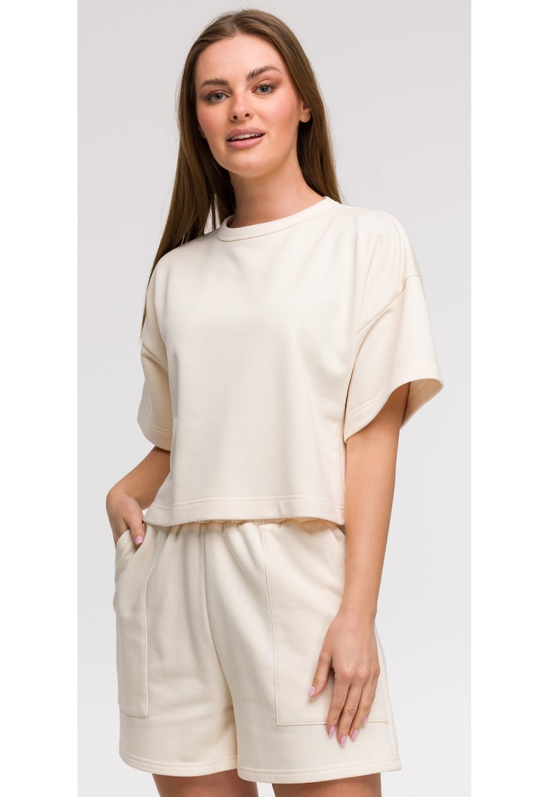 Caracteristici Tip produs: bluza de trening Culoare: ecru Imprimeu: uni Croiala: crop Sistem inchidere: fara inchidere Material: poliester