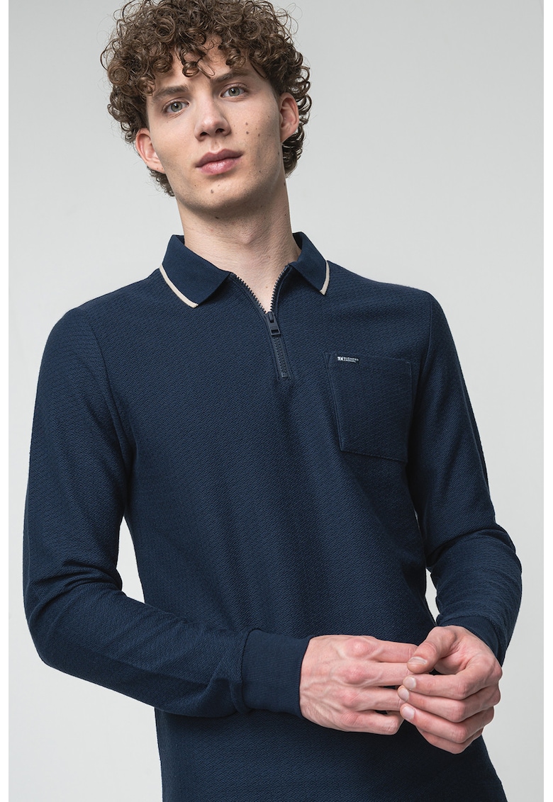 Caracteristici Culoare: bleumarin Imprimeu: uni Material: bumbac Stil: casual Croiala: regular fit Sistem inchidere: fara inchidere Lungime maneca: maneca lunga Detalii: fenta cu fermoar Compozitie Exterior: 100% bumbac Info model Modelul poarta un produs de marimea M. Marimi model: 190 cm inaltime