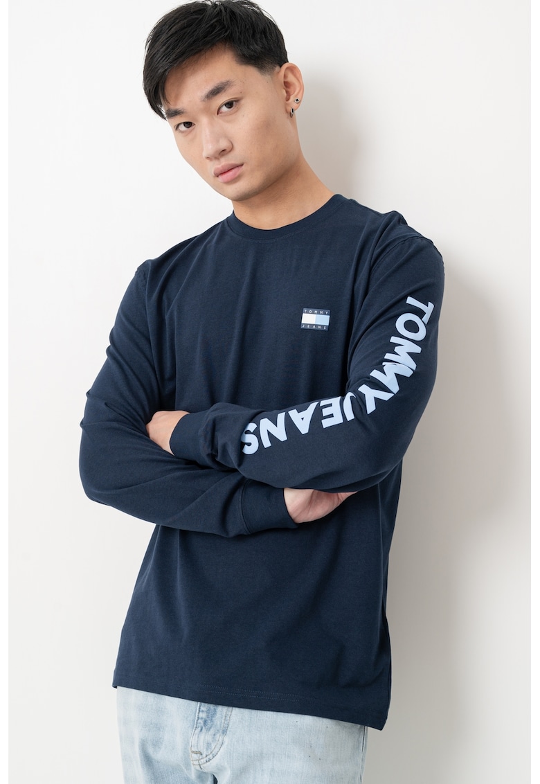 - bleumarin Imprimeu: logo Material: bumbac Stil: casual Croiala: regular fit Sistem inchidere: fara inchidere Decolteu: decolteu la baza gatului Lungime maneca: maneca lunga Compozitie Exterior: 100% bumbac organic Info model Modelul poarta un produs de marimea M. Marimi model: 189 cm inaltime