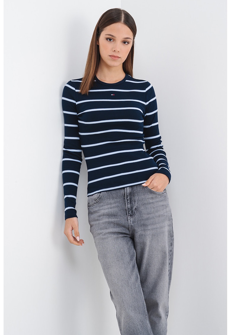 - bleumarin Imprimeu: dungi Stil: casual Croiala: slim fit Sistem inchidere: fara inchidere Material: bumbac Decolteu: rotund Lungime maneca: maneca lunga Compozitie Exterior: 95% bumbac