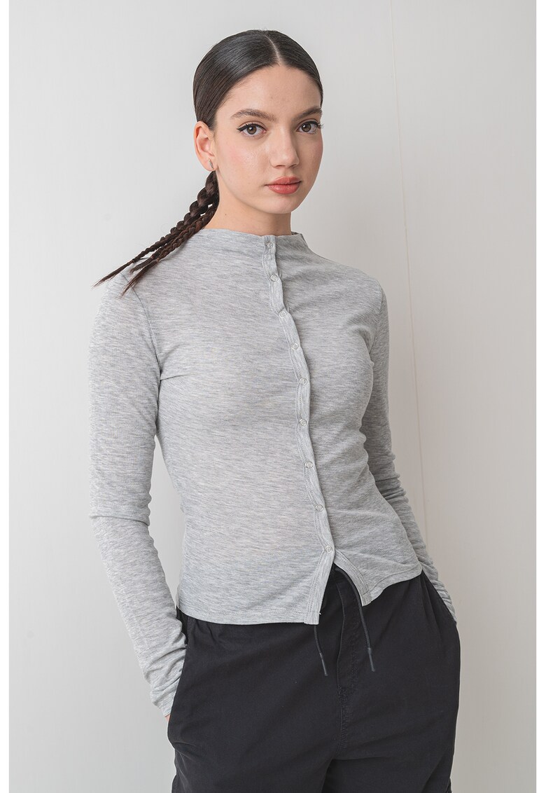 Caracteristici Culoare: gri deschis Imprimeu: uni Stil: casual Croiala: slim fit Sistem inchidere: capse Material: viscoza Guler: scurt Lungime maneca: maneca lunga Compozitie Exterior: 95% viscoza