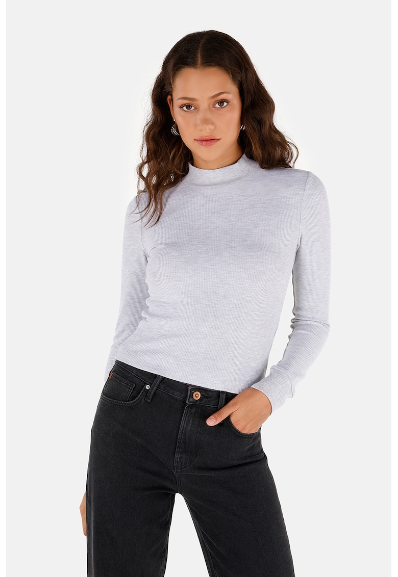 Caracteristici Culoare: gri deschis melange Imprimeu: uni Stil: casual Croiala: slim fit Sistem inchidere: fara inchidere Material: poliester