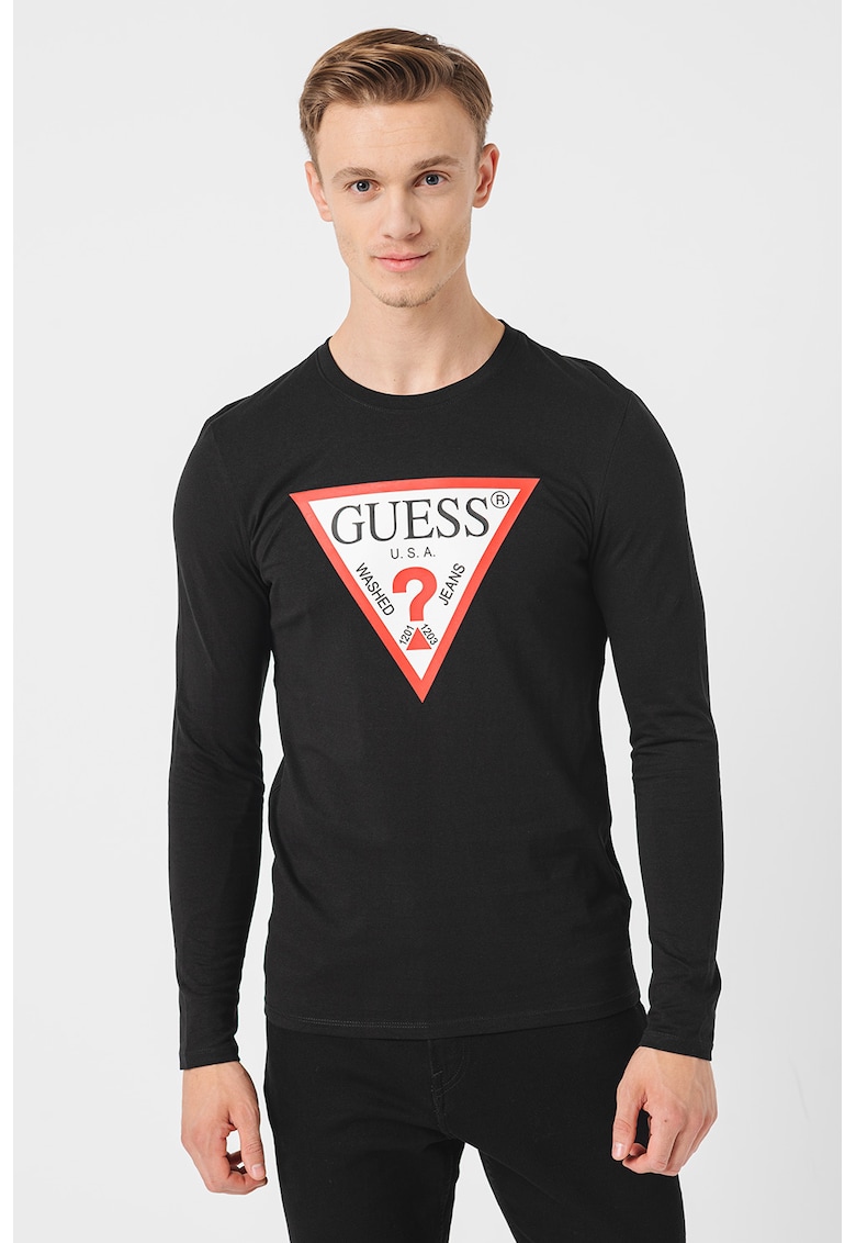 - negru Imprimeu: logo Material: bumbac Stil: casual Croiala: regular fit Sistem inchidere: fara inchidere Decolteu: rotund Lungime maneca: maneca lunga Compozitie Exterior: 100% bumbac Info model Modelul poarta un produs de marimea M. Marimi model: 191 cm inaltime