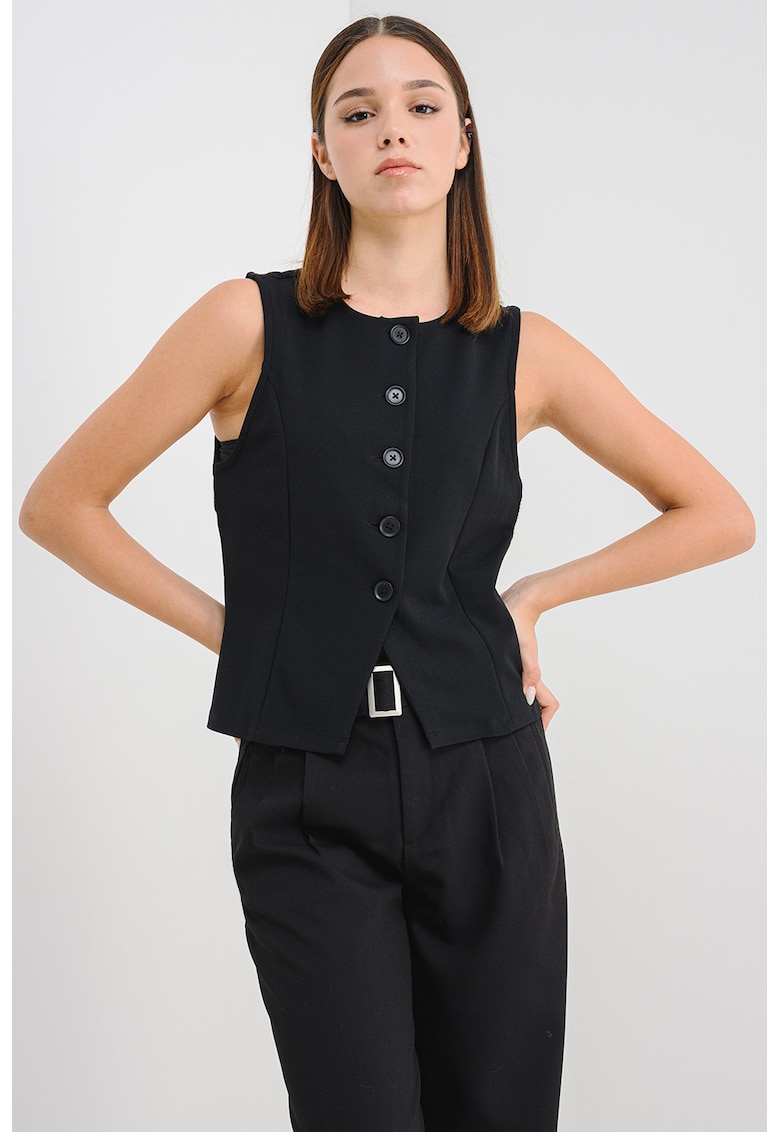 Caracteristici Culoare: negru Imprimeu: uni Stil: casual Croiala: slim fit Sistem inchidere: nasturi Material: poliester
