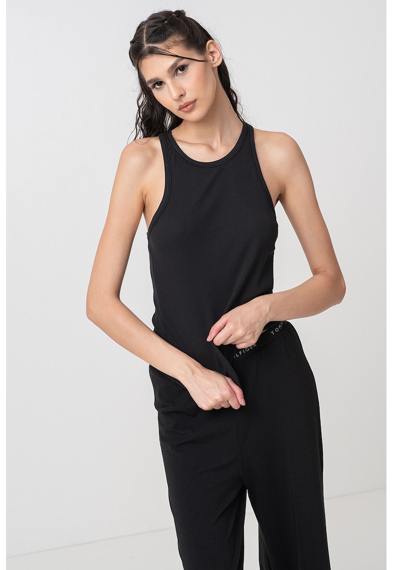 Caracteristici Culoare: negru Imprimeu: uni Stil: casual Croiala: slim fit Sistem inchidere: fara inchidere Material: bumbac organic Decolteu: rotund Lungime maneca: fara maneca Detalii: striatii