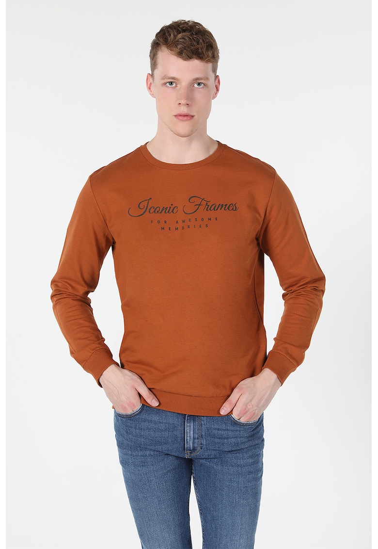 Caracteristici Tip produs: bluza de trening Culoare: portocaliu stins Imprimeu: text Material: bumbac Croiala: regular fit Decolteu: la baza gatului Sistem inchidere: fara inchidere Lungime maneca: maneca lunga Detalii: margini striate Compozitie Exterior: 100% bumbac