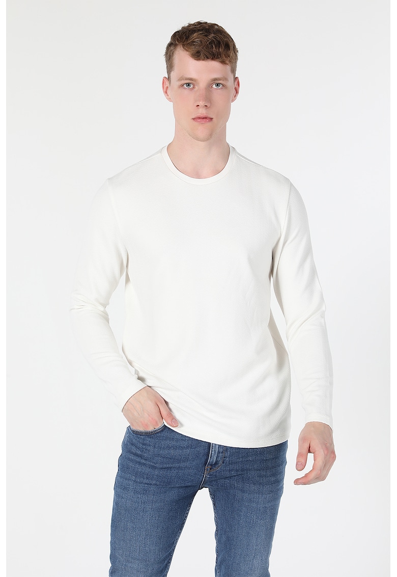 - viscoza Croiala: regular fit Decolteu: la baza gatului Sistem inchidere: fara inchidere Lungime maneca: maneca lunga Detalii: aspect texturat Compozitie Exterior: 77% poliester