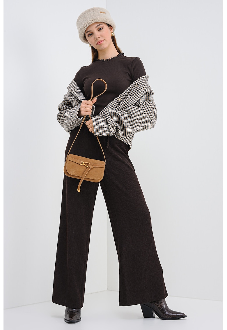 Caracteristici Culoare: maro inchis Imprimeu: uni Stil: casual Croiala: slim fit Sistem inchidere: fara inchidere Material: bumbac Lungime maneca: maneca lunga Detalii: garnituri din dantela