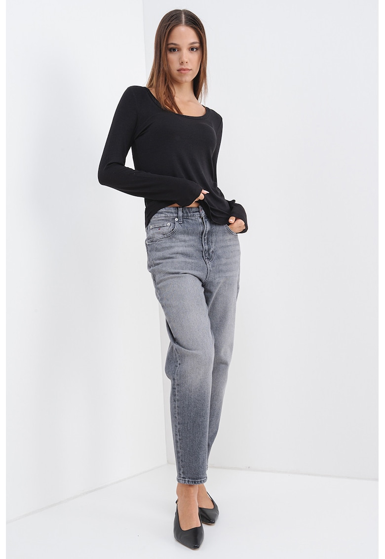 Caracteristici Culoare: negru Imprimeu: uni Stil: casual Croiala: regular fit Sistem inchidere: fara inchidere Material: modal Decolteu: rotund Lungime maneca: maneca lunga Detalii: aspect striat