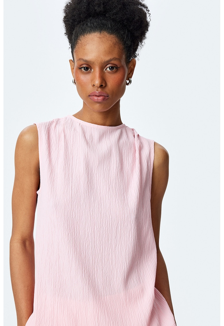 Caracteristici Culoare: roz pal Imprimeu: uni Stil: elegant Croiala: asimetric Sistem inchidere: nasturi Material: sintetic