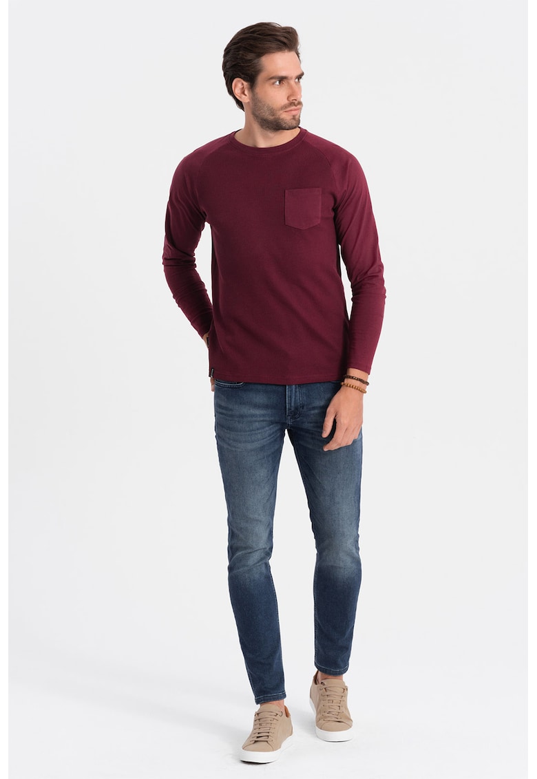Caracteristici Culoare: visiniu Imprimeu: uni Material: bumbac Stil: casual Croiala: regular fit Sistem inchidere: fara inchidere Decolteu: rotund Lungime maneca: maneca lunga Buzunare: unul pe piept Detalii: aspect texturat