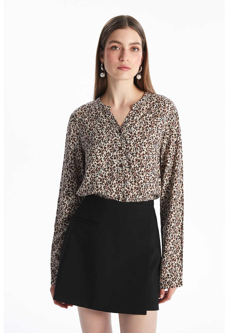 - maro deschis Imprimeu: animal print Stil: casual Croiala: regular fit Sistem inchidere: fara inchidere Material: viscoza Decolteu: in v Guler: tunica Lungime maneca: maneca lunga Detalii: fenta scurta cu nasturi Compozitie Exterior: 100% viscoza