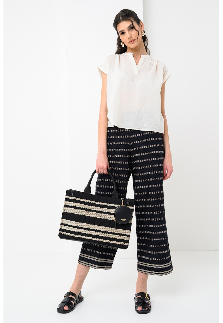 Caracteristici Culoare: bej Imprimeu: uni Stil: casual Croiala: regular fit Sistem inchidere: fara inchidere Material: bumbac Decolteu: in v Guler: tunica Maneci: kimono Lungime maneca: maneca scurta Compozitie Exterior: 100% bumbac Info model Modelul poarta un produs de marimea S. Marimi model: 181 cm inaltime
