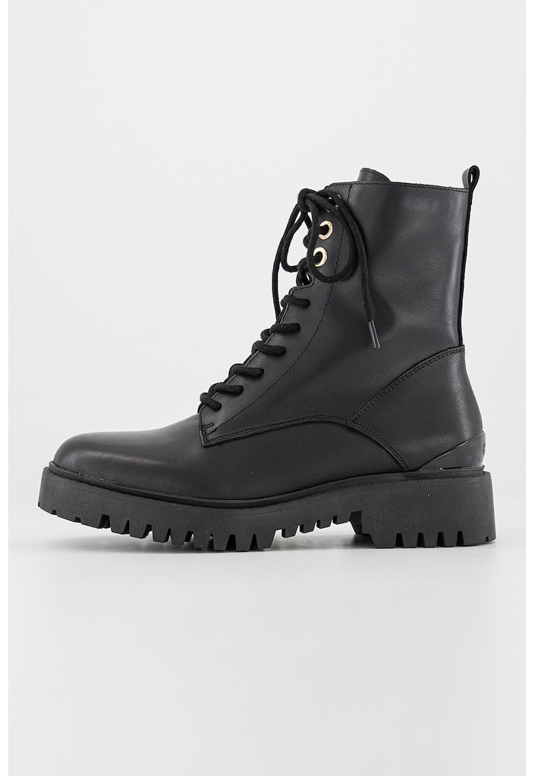 Caracteristici Tip: cu talpa joasa Culoare: negru Material: piele naturala Imprimeu: uni Stil: casual Varf: rotund Tip talpa: plata Detalii: aplicatie cu logo metalic Sistem inchidere: siret