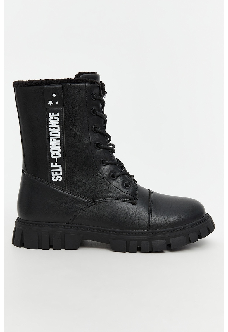 Caracteristici generale Tip produs: bocanci Culoare: negru Material: piele ecologica Stil: casual Lungime: peste glezna Sistem inchidere: siret