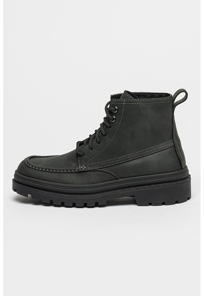 Caracteristici Tip: bocanci Culoare: negru stins Material: piele naturala Imprimeu: uni Stil: casual Varf: rotund Tip talpa: plata Sistem inchidere: siret Compozitie Partea superioara: piele Material interior: textil
