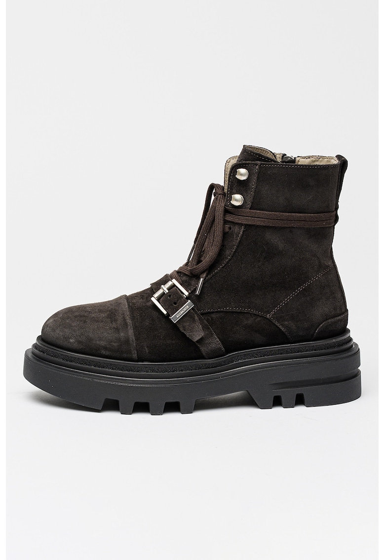 Caracteristici Tip: cu talpa joasa Culoare: maro inchis Material: piele naturala Stil: casual Varf: rotund Tip talpa: demi-wedge Culoare elemente metalice: argintiu Sistem inchidere: fermoar Compozitie Partea superioara: piele Material interior: piele Material talpa: alte materiale