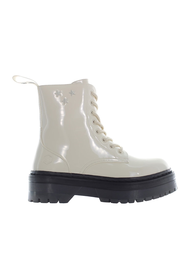 Caracteristici Tip: cu toc Culoare: alb Material: piele ecologica Imprimeu: uni Stil: casual Varf: rotund Tip toc: masiv Detalii: aspect lacuit Sistem inchidere: siret Compozitie Partea superioara: alte materiale Material interior: alte materiale