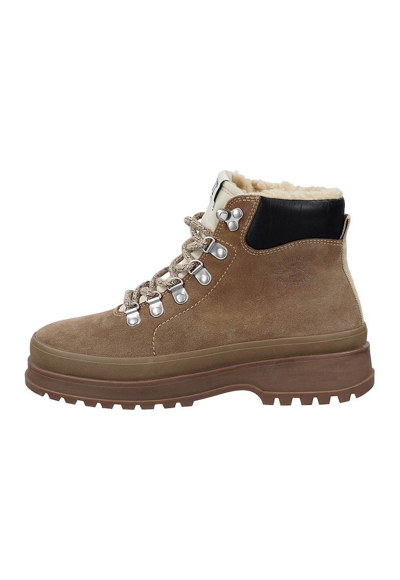 - bej Material: piele intoarsa Imprimeu: uni Stil: casual Varf: rotund Culoare elemente metalice: auriu Sistem inchidere: siret Compozitie Partea superioara: piele intoarsa Material interior: textil Material talpa: alte materiale