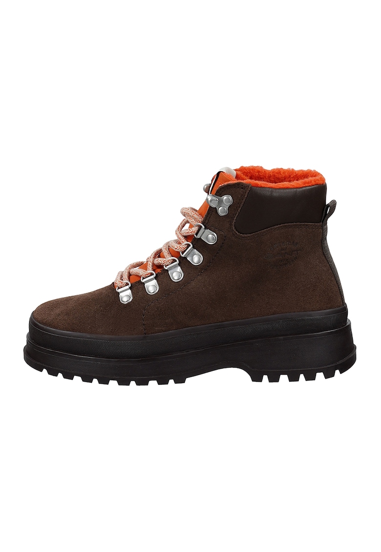 Caracteristici Tip: cu talpa joasa Culoare: maro inchis Material: piele intoarsa Imprimeu: logo Stil: casual Varf: rotund Tip talpa: plata Culoare elemente metalice: auriu Sistem inchidere: siret Compozitie Partea superioara: piele intoarsa Material interior: textil Material talpa: alte materiale
